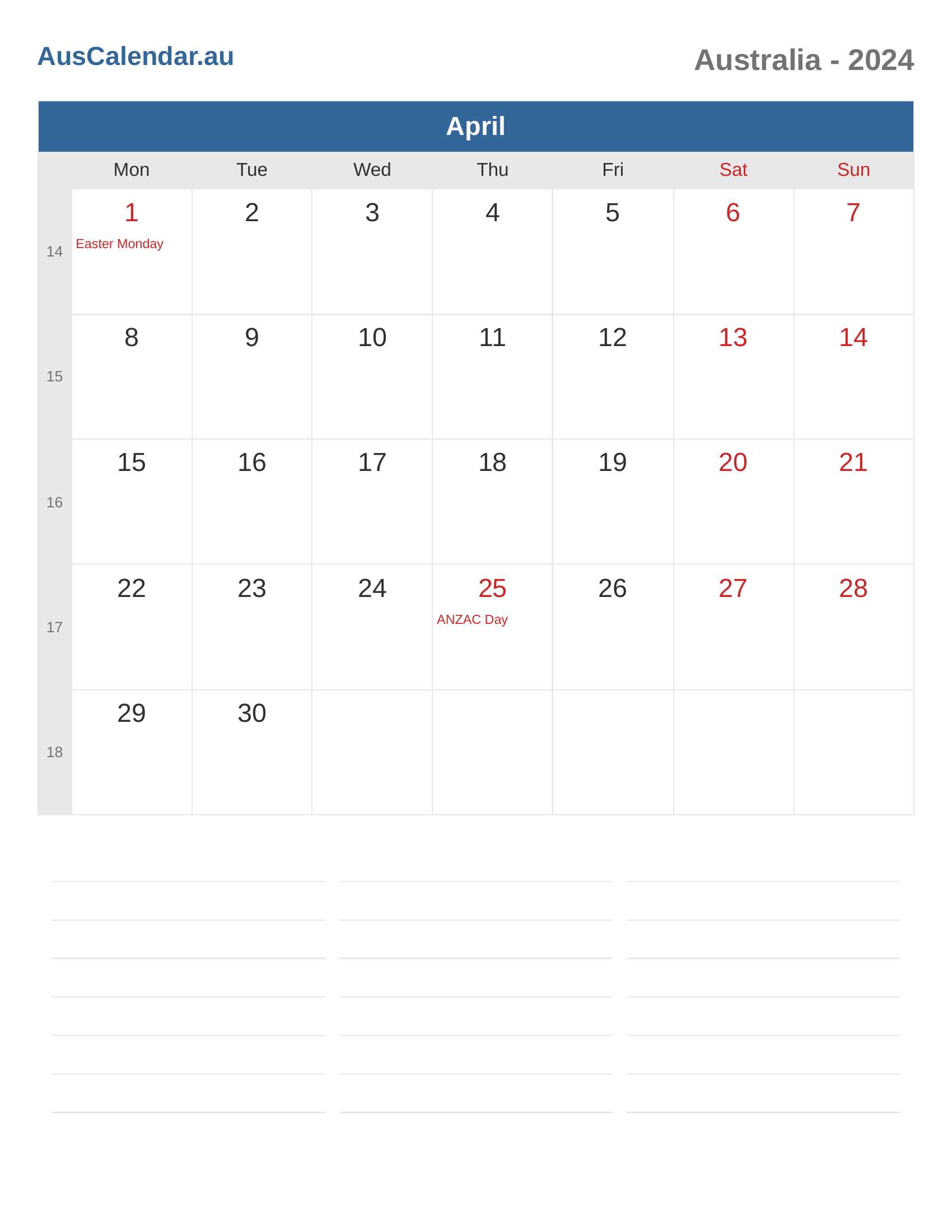 Australia Calendar 2024 - April