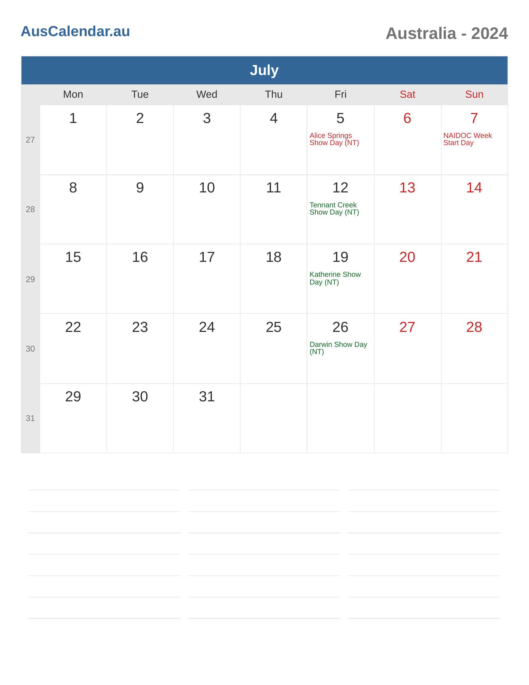 Australia Calendar 2024 - July