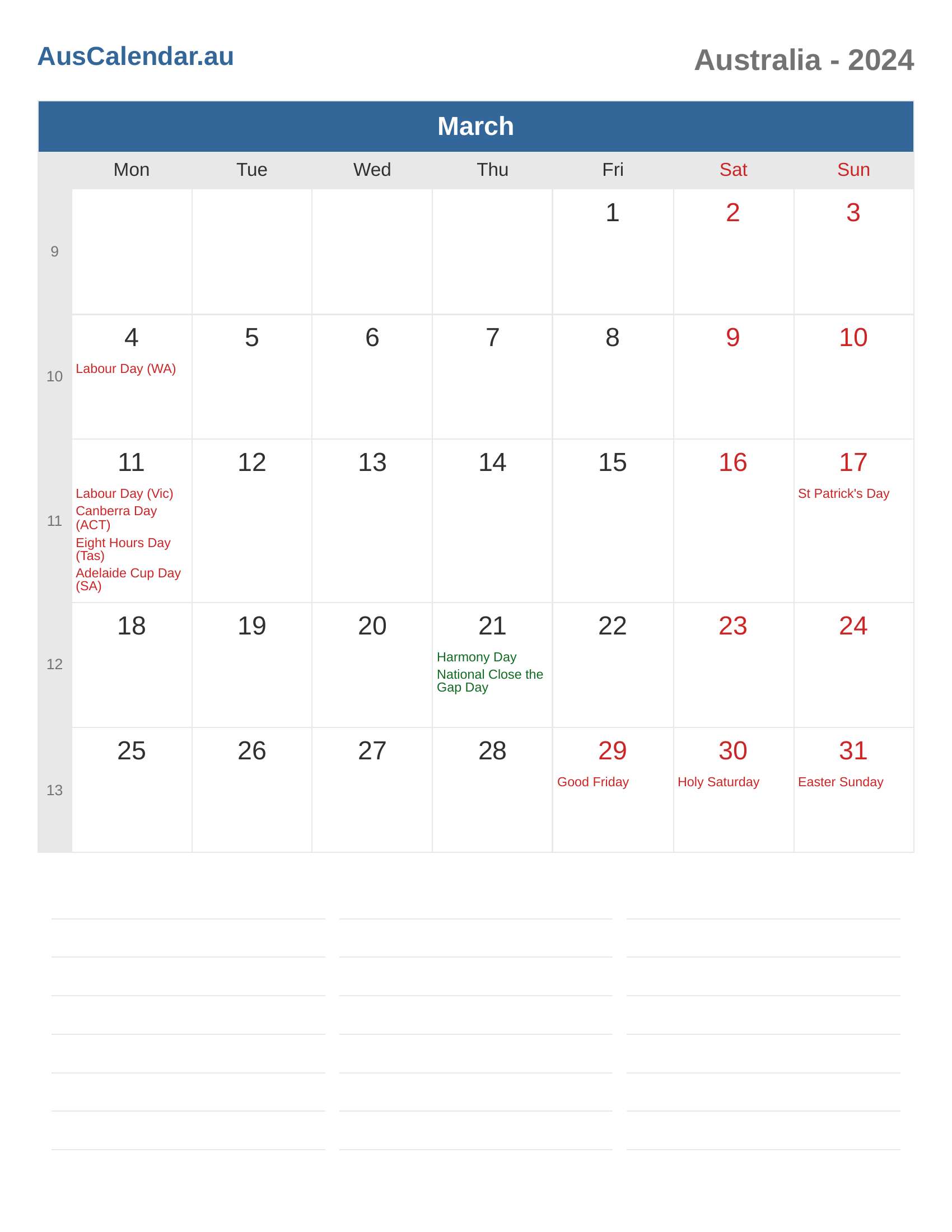 Labour Day (Vic) • Canberra Day (ACT) • Eight Hours Day (Tas) • Adelaide Cup Day (SA) |