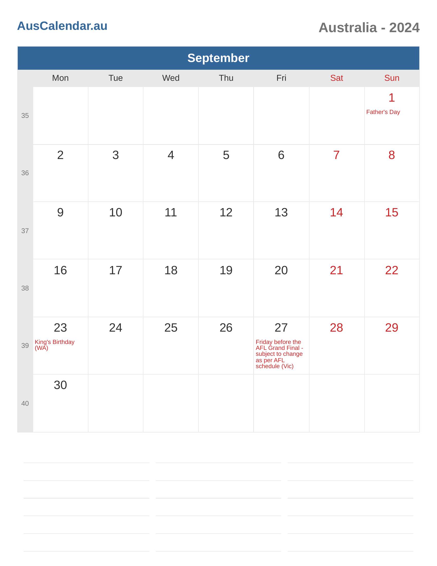 Australia Calendar 2024 - September