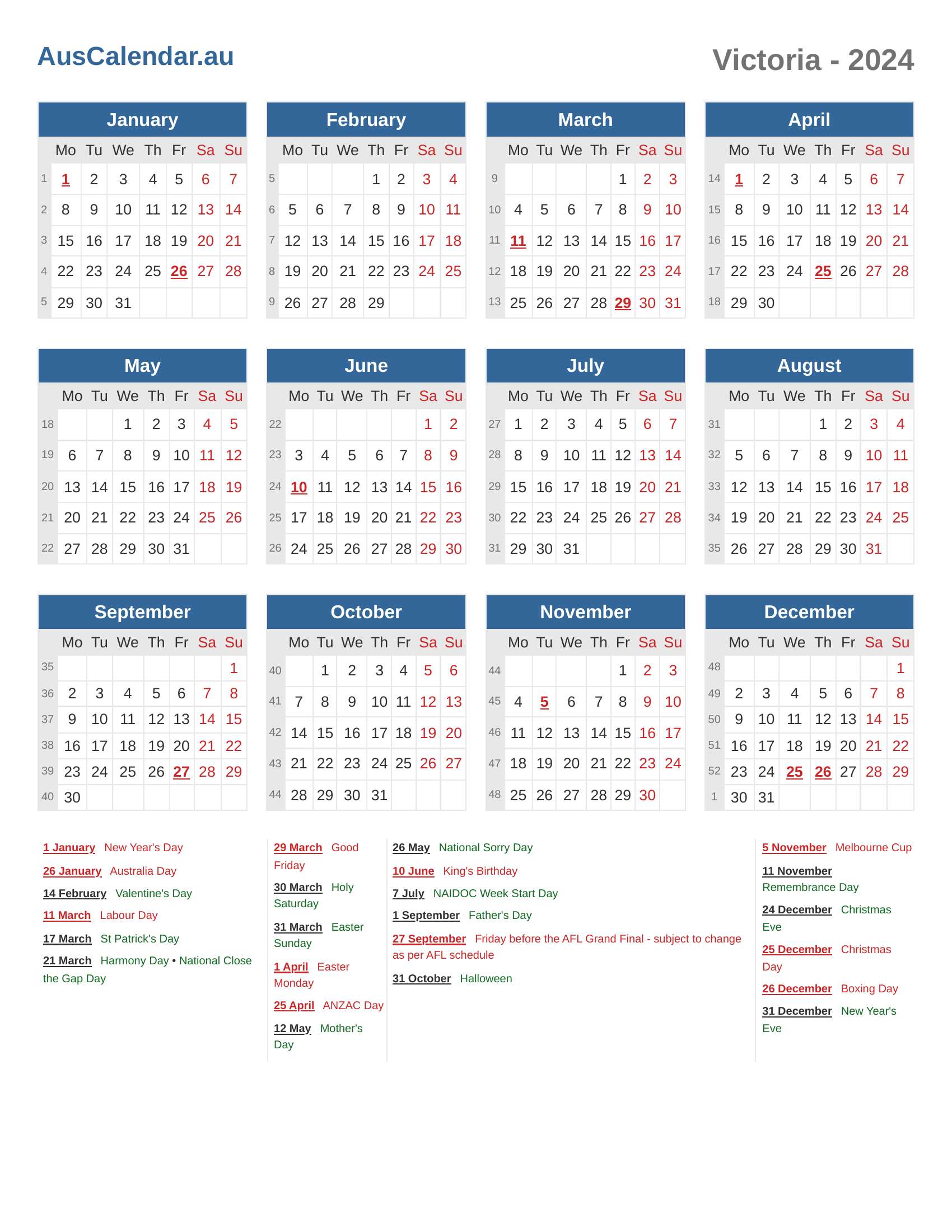 Victoria Calendar 2024