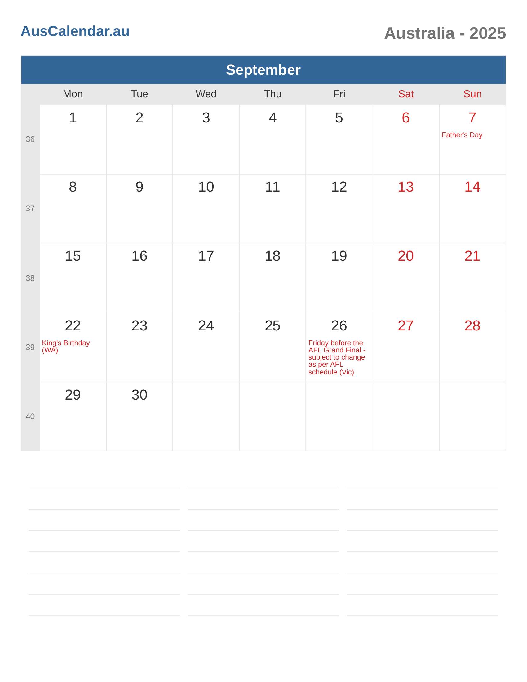 Friday before the AFL Grand Final - subject to change as per AFL schedule (Vic) |