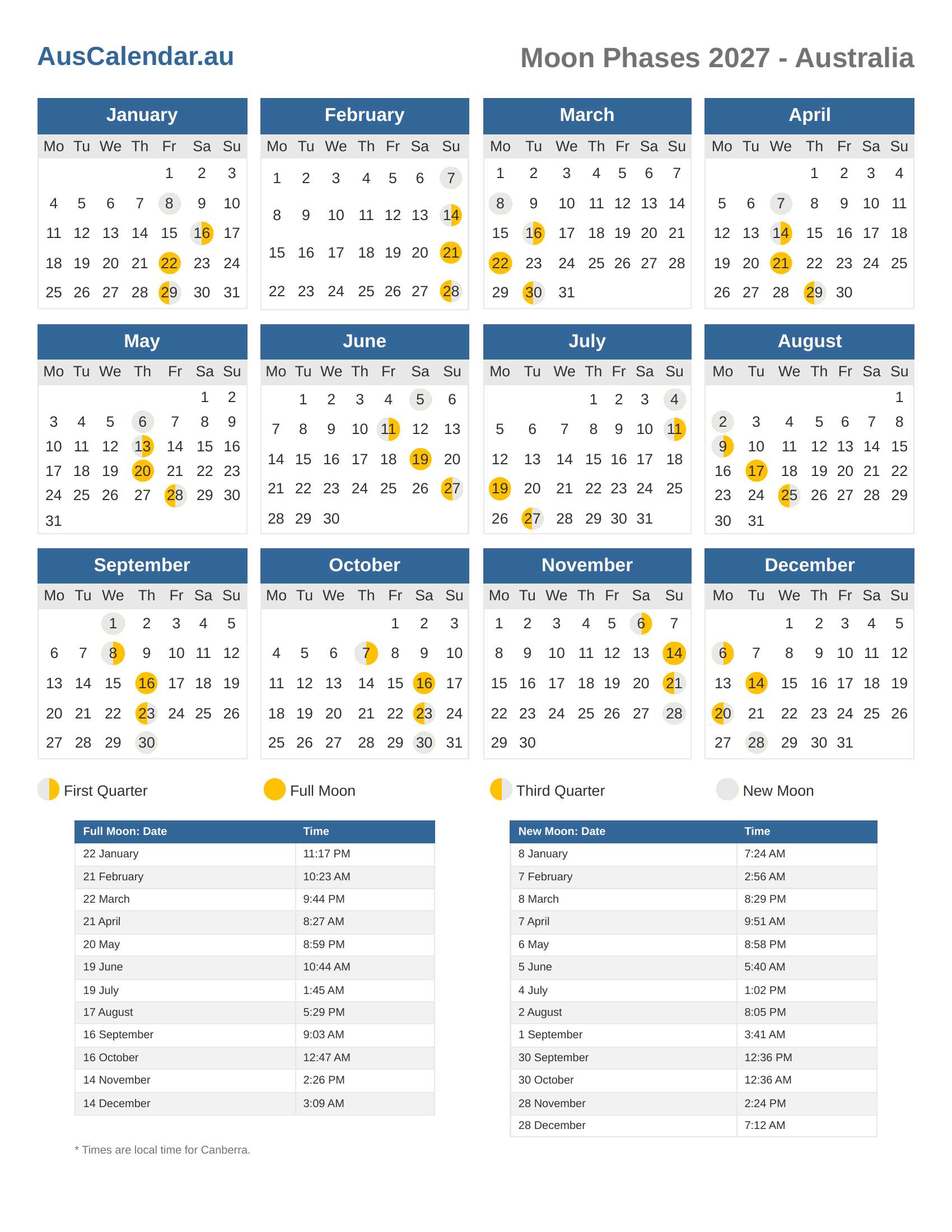 Moon Phases 2027 - Australia