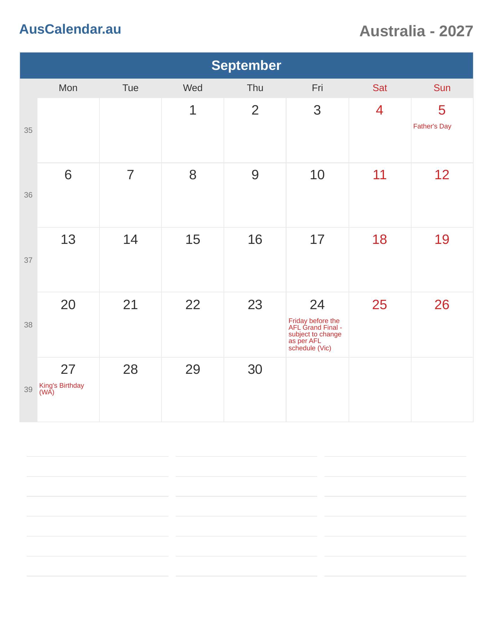 Friday before the AFL Grand Final - subject to change as per AFL schedule (Vic) |