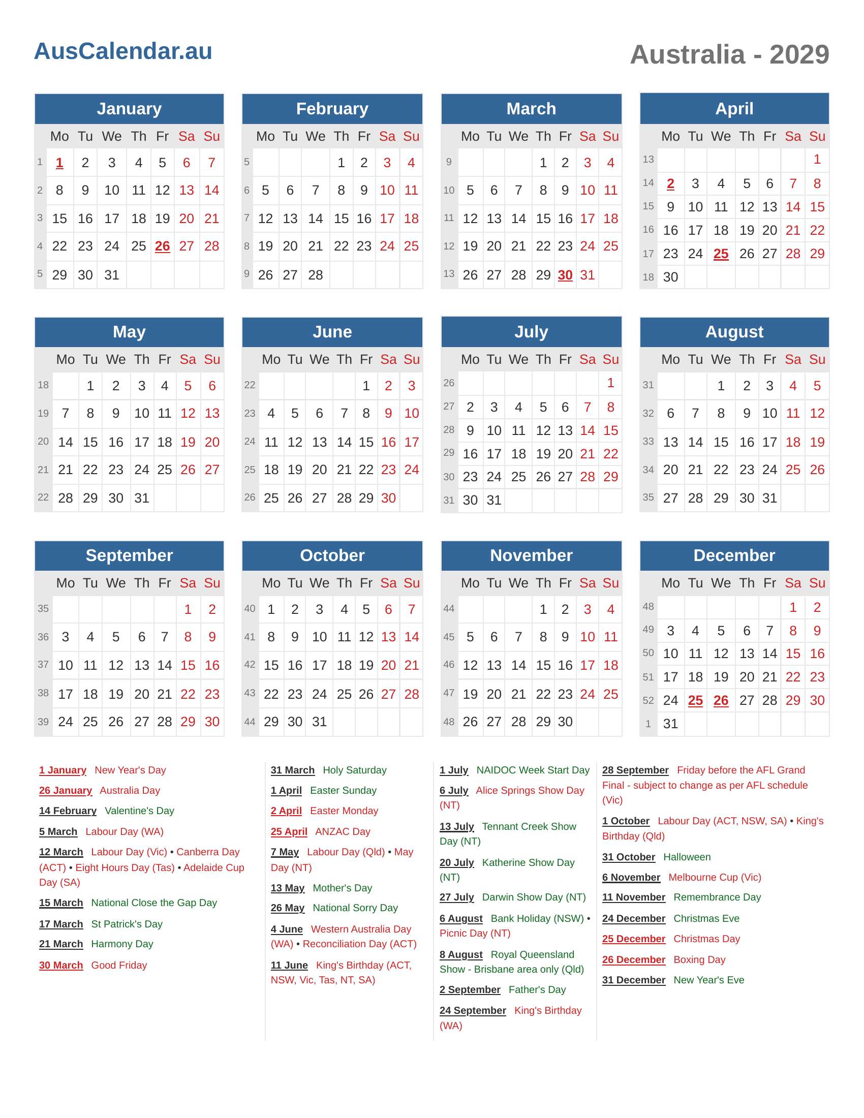 Bank Holiday (NSW) • Picnic Day (NT) |