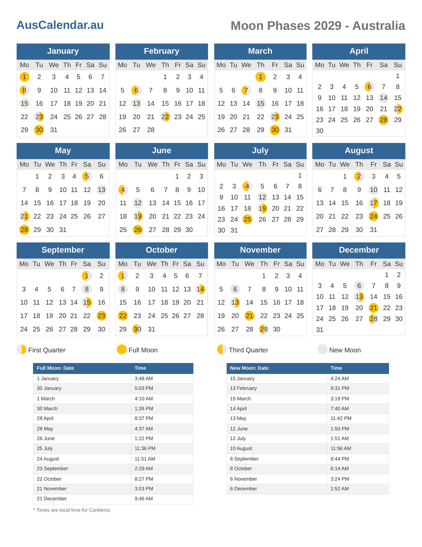 Moon Phases 2029 - Australia