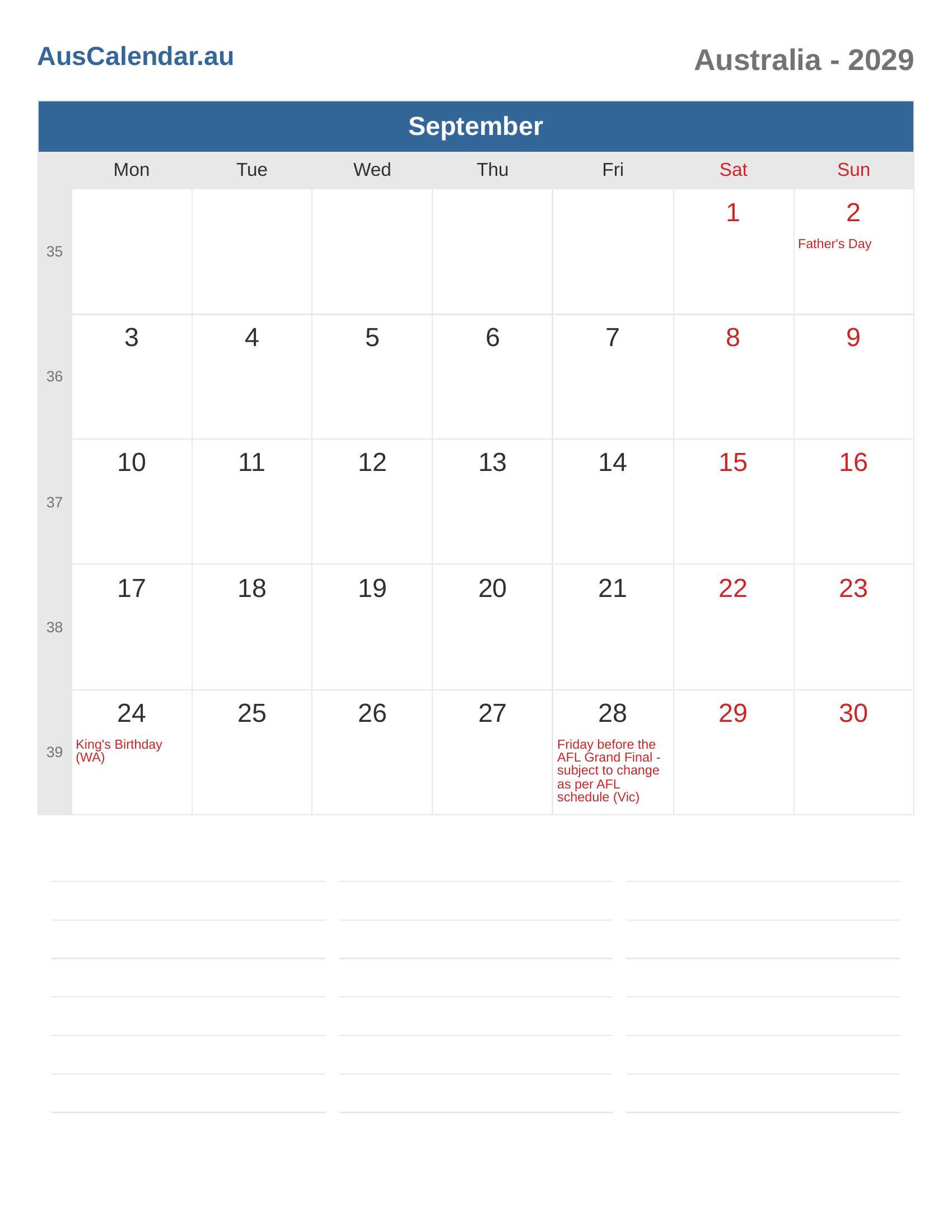 Friday before the AFL Grand Final - subject to change as per AFL schedule (Vic) |